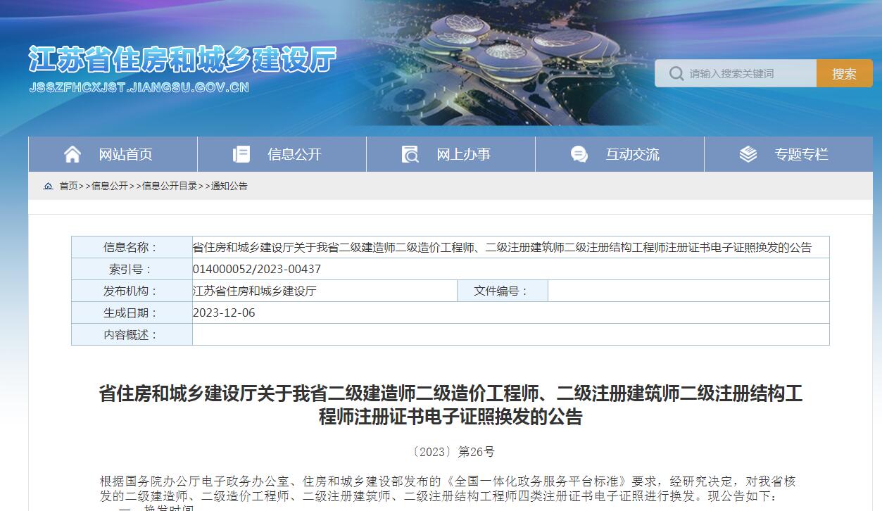 省住房和城乡建设厅关于我省二级建造师二级造价工程师、二级注册建筑师二级注册结构工程师注册证书电子证照换发的公告〔2023〕第26号根据国务院办公厅电子政务办公室、住房和城乡建设部发布的《全国一体化政务服务平台…